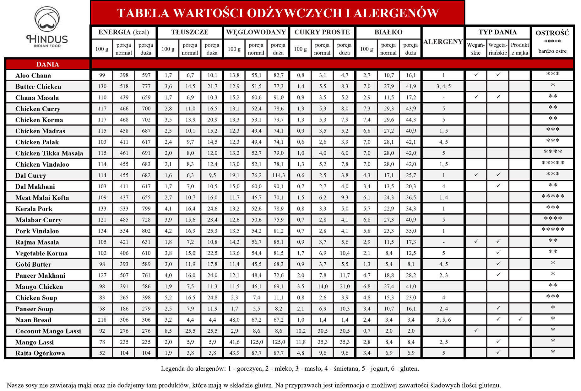 Tabela wartości odżywczysz i ALERGENÓW